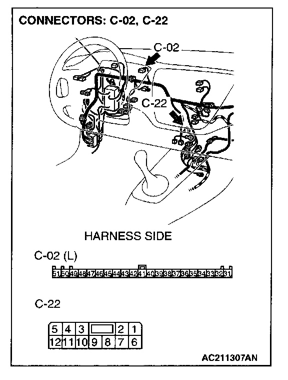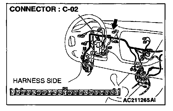 STEP 3. Check combination meter connector C-02 for loose, corroded or damaged terminals, or terminals pushed back in the connector.