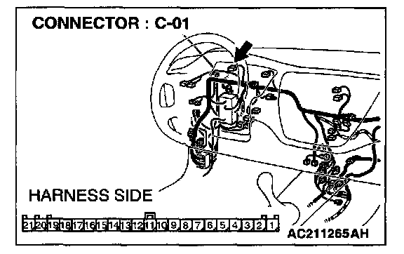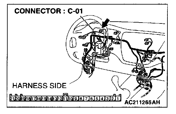 STEP 5. Check combination meter connector C-01 for loose, corroded or damaged terminals, or terminals pushed back in the connector.