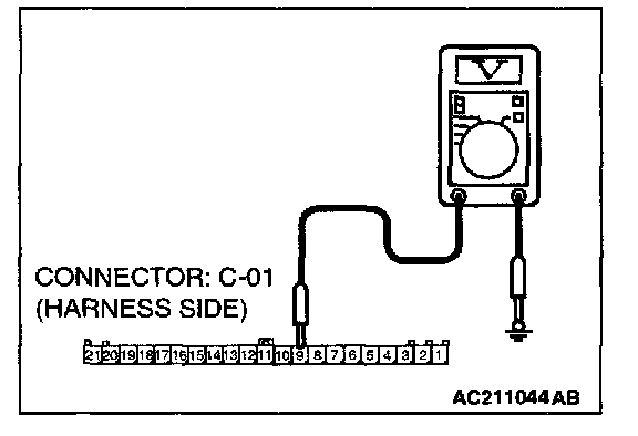 1. Disconnect combination meter connector C-01 and measure the voltage available at the wiring harness side of the connector.