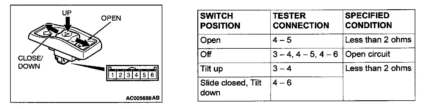 Sunroof / Moonroof Switch: Testing and Inspection