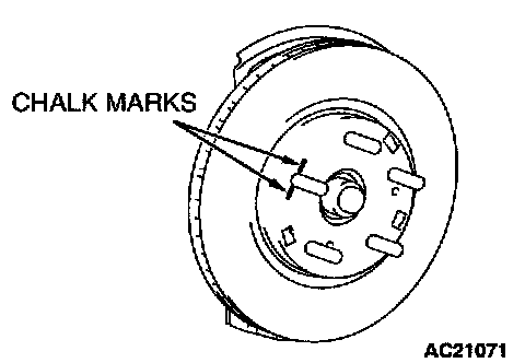 1. Chalk phase marks on the wheel stud and the brake disc, which run-out is excessive as shown