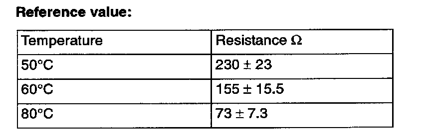 Standard value: ............................70 °C (150 °F) 104 ± 13.5 Ohm