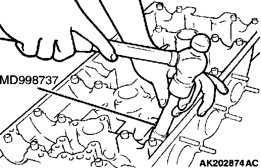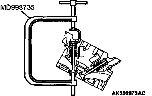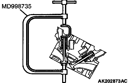 1. Using special tool MD998735 or MD998772, compress the retainer locks.