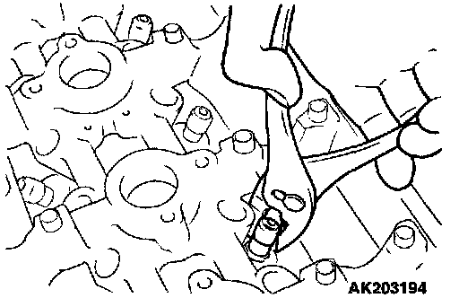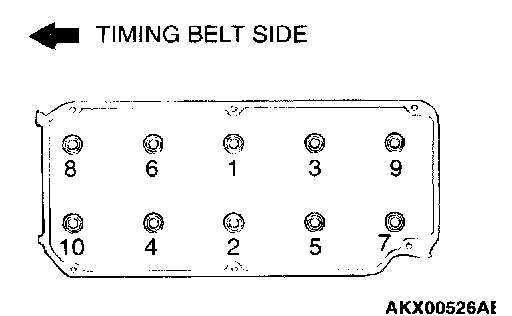 3. Using special tool MB991654 tighten the bolts to the specified torque 78 Nm (58 ft. lbs.), using the tightening sequence shown.