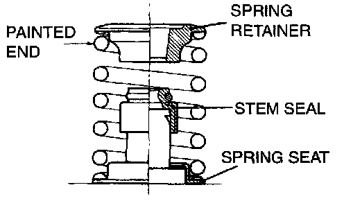 NOTE: The valve spring, if excessively compressed, causes the bottom end of retainer to be in contact with the stem seal, and damage it.