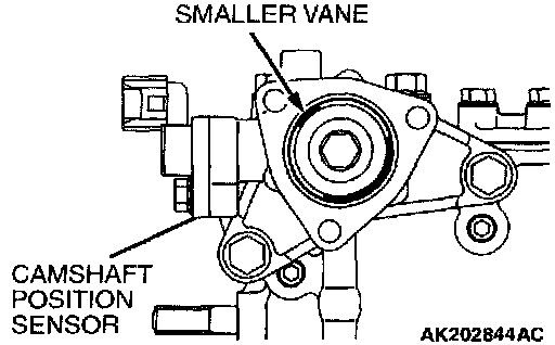 2. Install the camshaft position sensing cylinder with the smaller vane located as shown in the drawing.