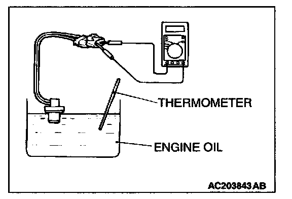 2. When the oil temperature reaches the standard value, check that voltage is supplied between the terminals.