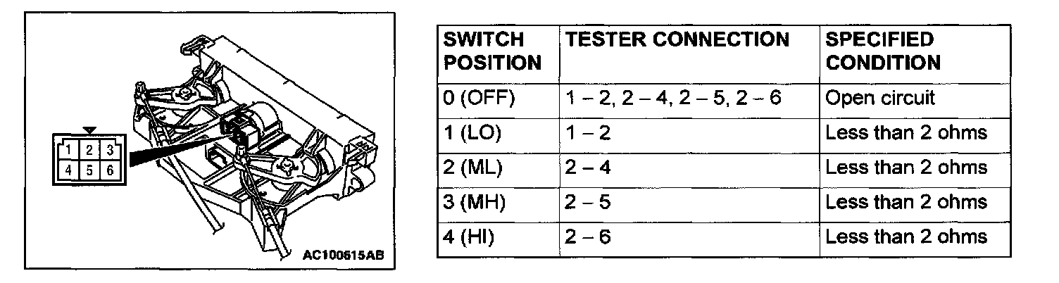 Blower Switch Continuity Check: