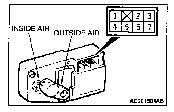 Check the outside/inside air selection damper control motor by the given procedures.