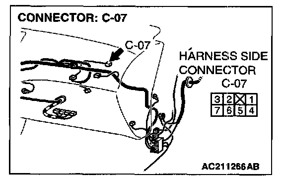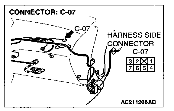 STEP 4. Check outside/inside air selection damper control motor connector C-07 for loose, corroded or damaged terminals, or terminals pushed back in the connector.