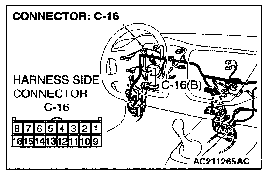 STEP 6. Check outside/inside air selection damper control motor connector C-07 and A/C-ECU connector C-16 for loose, corroded or damaged terminals, or terminals pushed back in the connector.