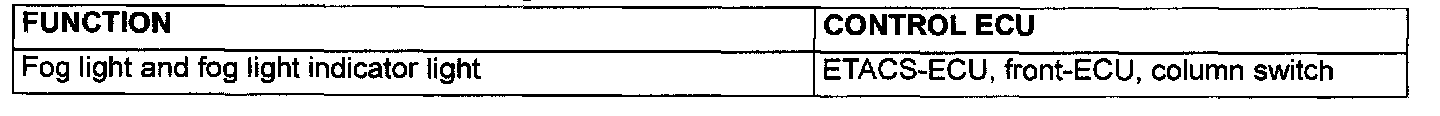 The ECUs affect the functions and control of the fog lights and fog light indicator light