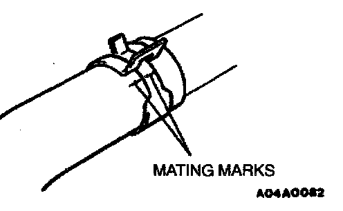 Make mating marks on the radiator hose and the hose clamp. Disconnect the radiator hose.