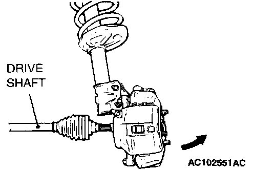 2. Withdraw the drive shaft from the hub by pulling the bottom of the hub and knuckle towards you.