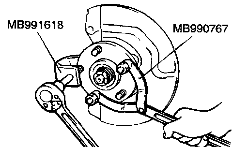 3. Use special tools MB990767 and MB991618 to remove the hub bolts.