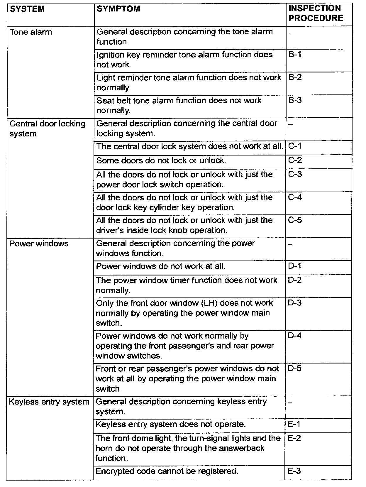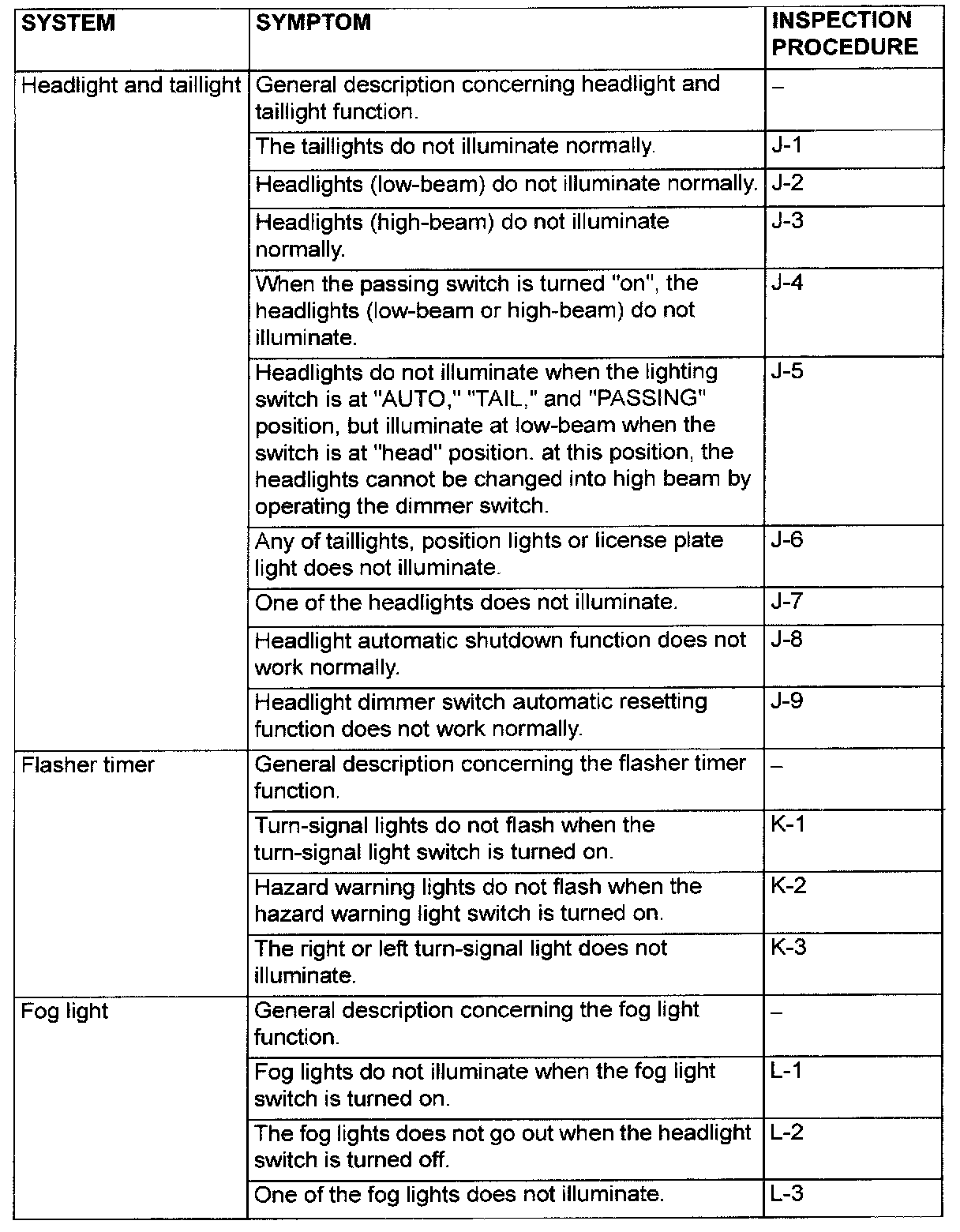 Symptom Chart <Function System> Part 4: