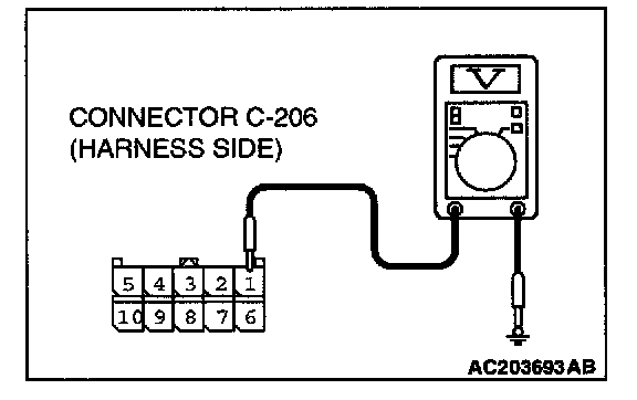 STEP 3. Check the battery power supply circuit to the column switch. Measure the voltage at column switch connector C-206.