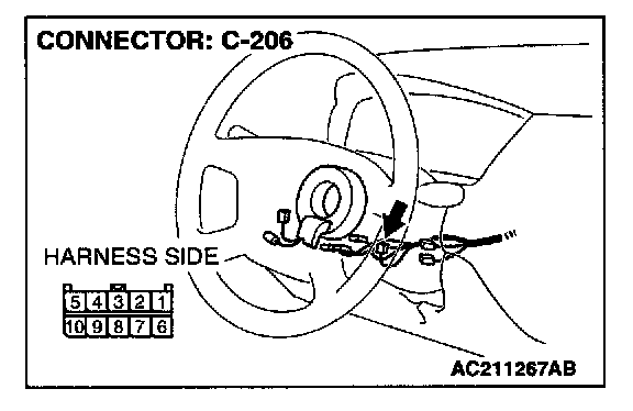 STEP 2. Check column switch connector C-206 for loose, corroded or damaged terminals, or terminals pushed back in the connector.