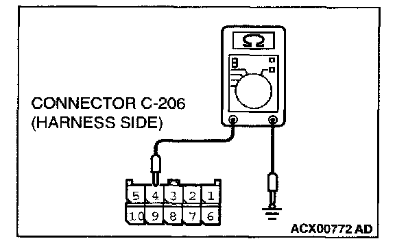 STEP 5. Check the ground circuit to the column switch. Measure the resistance at column switch connector C-206.