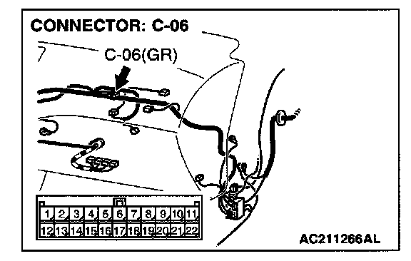 NOTE: Also check joint connector C-06 for loose, corroded, or damaged terminals, or terminals pushed back in the connector. If joint connector C-06 is damaged, repair or replace the damaged components) as described in Harness Connector Inspection.