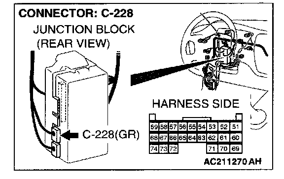 STEP 7. Check ETACS-ECU connector C-228 for loose, corroded or damaged terminals, or terminals pushed back in the connector.