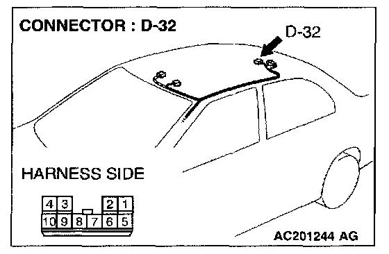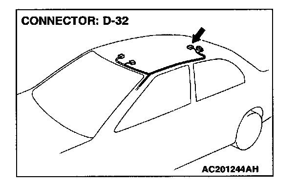 STEP 1. Check sunroof motor assembly connector D-32 for loose, corroded or damaged terminals, or terminals pushed back in the connector.