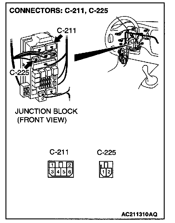 NOTE: Also check intermediate connectors C-18, C-126, junction block connectors C-211 and C-225 for loose, corroded, or damaged terminals, or terminals pushed back in the connector. If intermediate connectors C-18, C-126, junction block connector C-211 or C-225 is damaged, repair or replace the damaged components) as described in Harness Connector Inspection.