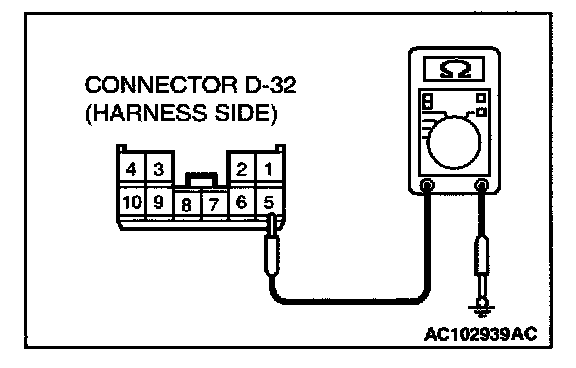 STEP 7. Check the wiring harness between sunroof motor connector D-32 (terminal 5) and ground.
