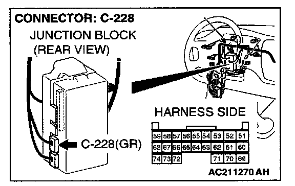 STEP 8. Check ETACS-ECU connector C-228 for loose, corroded or damaged terminals, or terminals pushed back in the connector.