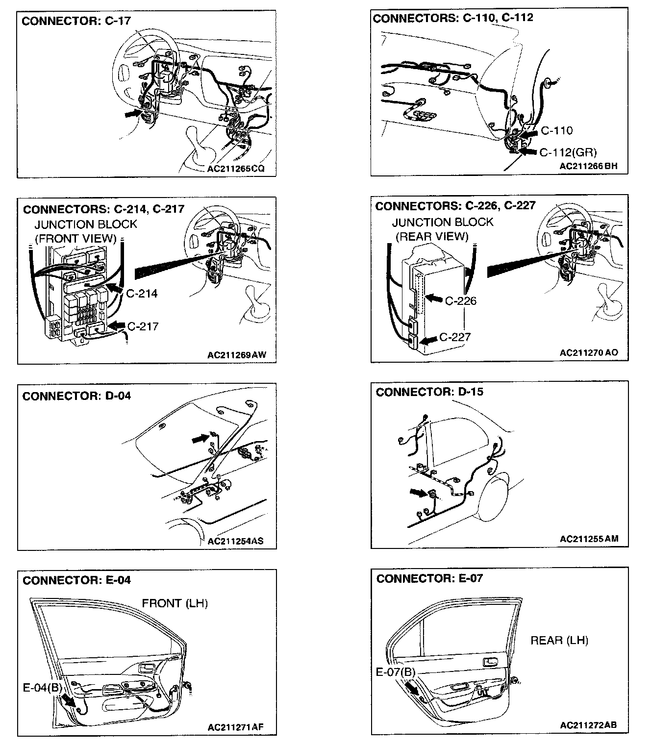 STEP 4. Check ETACS-ECU connectors C-226 and C-227 for loose, corroded or damaged terminals, or terminals pushed back in the connector.