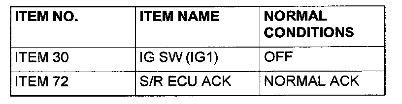 Q: Does scan tool MB991502 or MB991958 display the items "IG SW (IG1)" and "S/R ECU ACK" as normal condition?