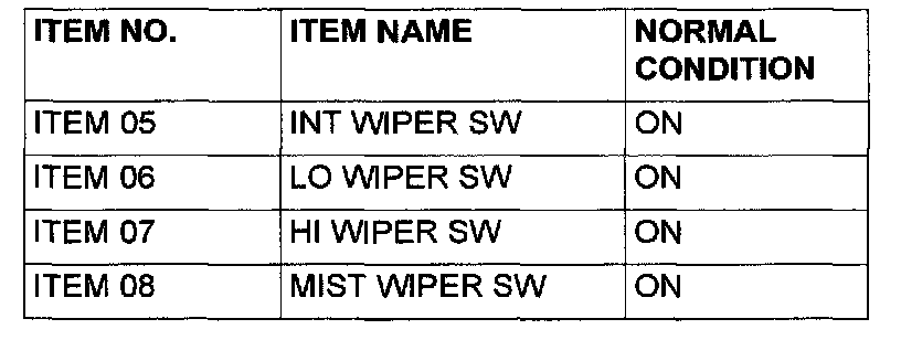 Q: Does scan tool MB991502 or MB991958 display the items "INT WIPER SW", "LO WIPER SW", "HI WIPER SW" and "MIST WIPER SW" as normal condition?
