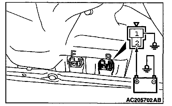 4. When connect the positive battery terminal to rear washer motor connector terminal number 2 , washer fluid should gush out.