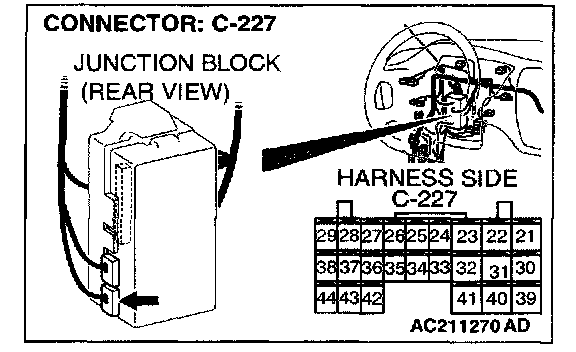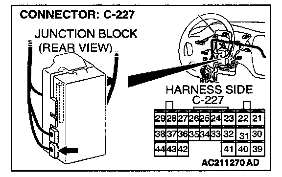 STEP 7. Check ETACS-ECU connector C-227 for loose, corroded or damaged terminals, or terminals pushed back in the connector.