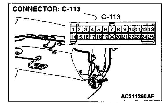NOTE: Also check intermediate connector C-113 for loose, corroded, or damaged terminals, or terminals pushed back in the connector. If intermediate connectors C-113 is damaged, repair or replace the damaged components) as described in Harness Connector Inspection.