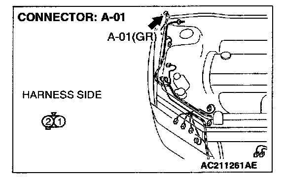 STEP 26. Check the wiring harness between side turn-signal light (RH) connector A-01 (terminal 1) and ground.Q: Is the wiring harness between side turn-signal light (RH) connector A-01 (terminal 1) and ground in good condition?