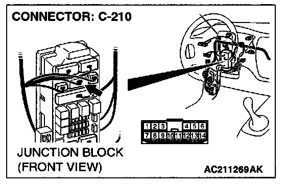 STEP 38. Check combination meter connector C-01 and junction block connector C-214 for loose, corroded or damaged terminals, or terminals pushed back in the connector.
