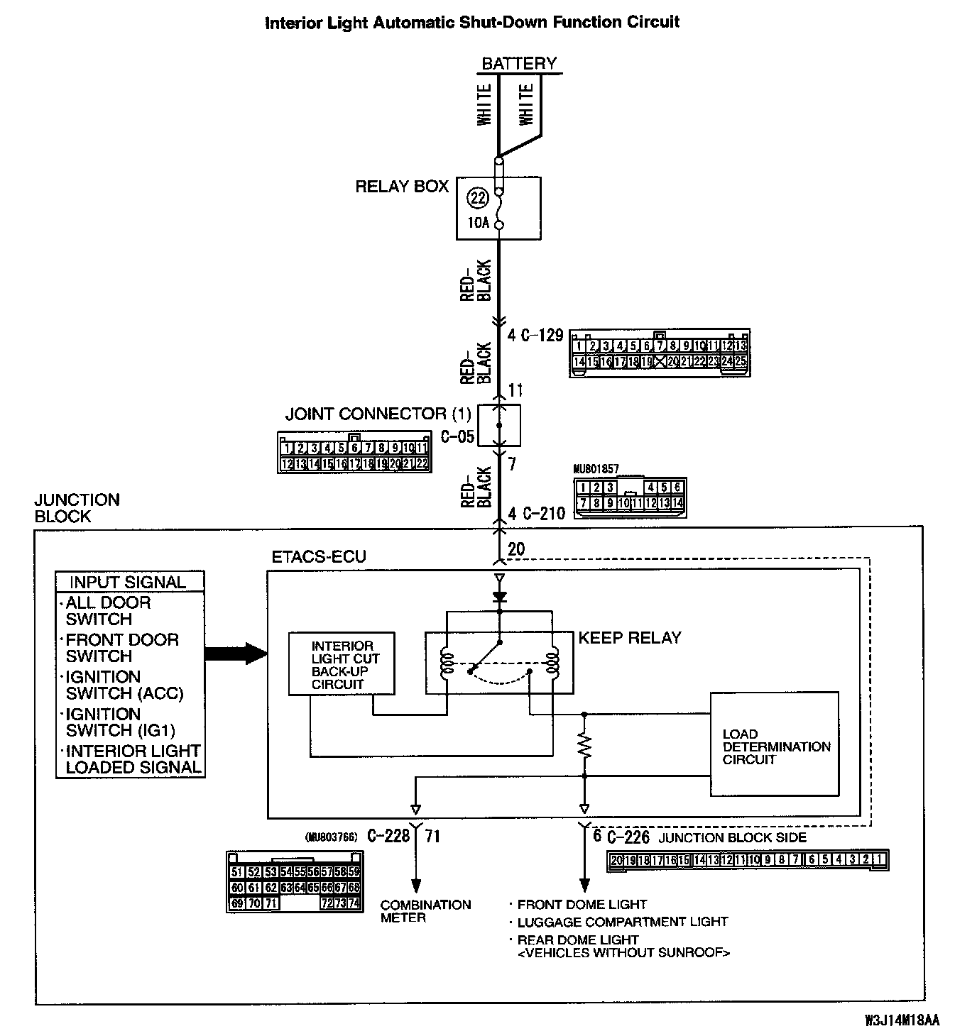The ETACS-ECU operates the interior light automatic shutdown function according to the following switch signals: