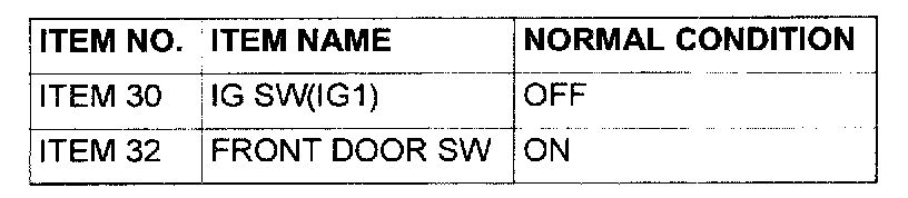 Normal condition is not displayed for the "FRONT DOOR SW": Refer to Inspection Procedure N-5 "ETACS-ECU does not receive a signal from the driver's or the front passenger's door switch".