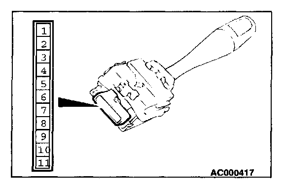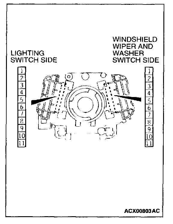 1. Remove the windshield wiper and washer switch, and check at the switch side.