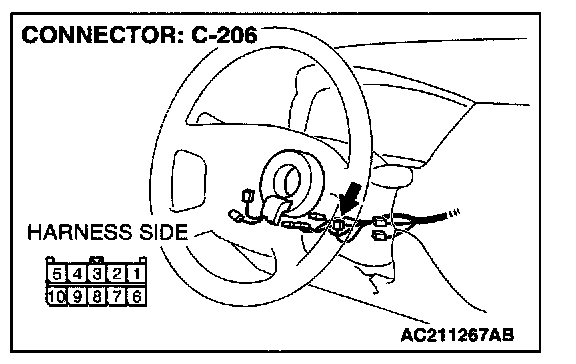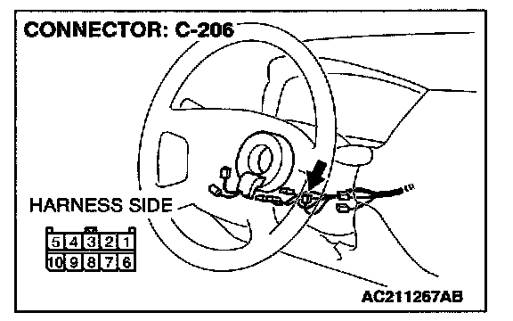 STEP 4. Check the wiring harness between column switch connector C-206 (terminal 6) and ETACS-ECU connector C-228 (terminal 66).