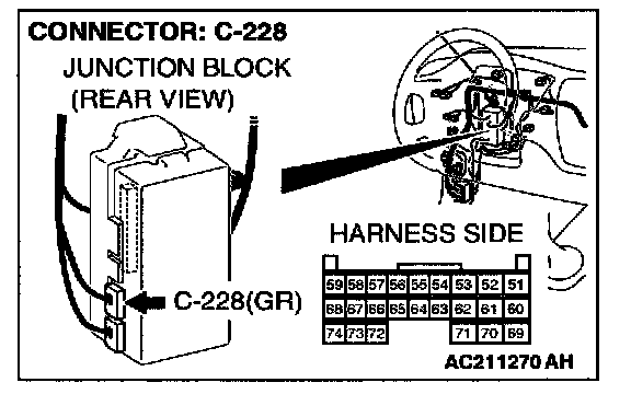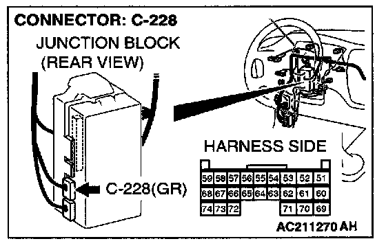 STEP 3. Check column switch connector C-206 and ETACS-ECU connector C-228 for loose, corroded or damaged terminals, or terminals pushed back in the connector.
