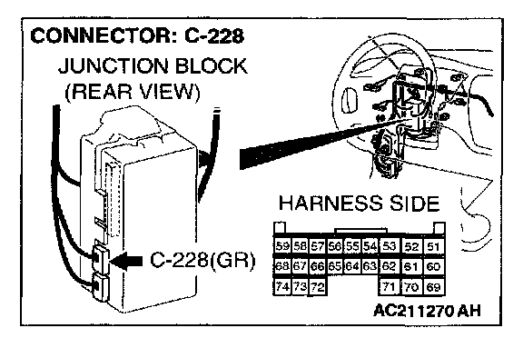 STEP 2. Check sunroof motor assembly connector D-32 and ETACS-ECU connector C-228 for loose, corroded or damaged terminals, or terminals pushed back in the connector.