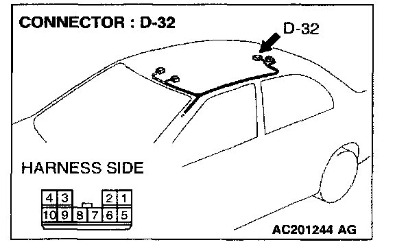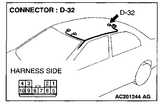 STEP 3. Check the wiring harness between sunroof motor assembly connector D-32 (terminal 10) and ETACS-ECU connector C-228 (terminal 59).