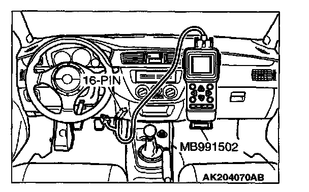 1. Connect scan tool MB991502 or MB991958 to the data link connector.