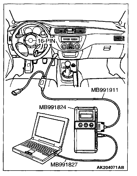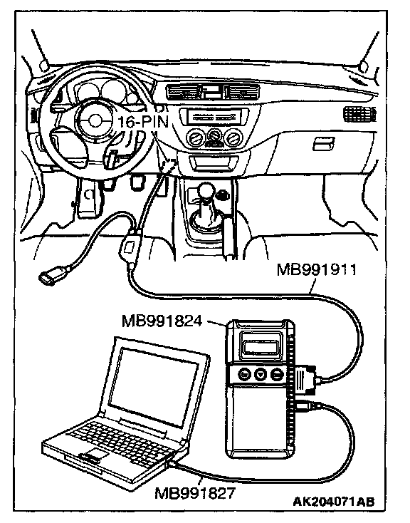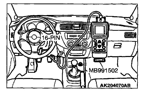1. Connect scan tool MB991502 or MB991958 to the data link connector.
