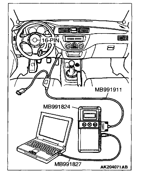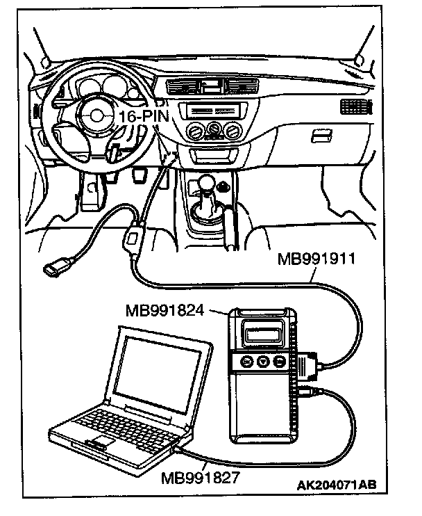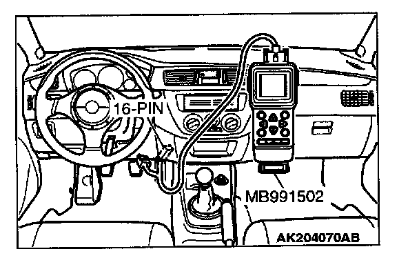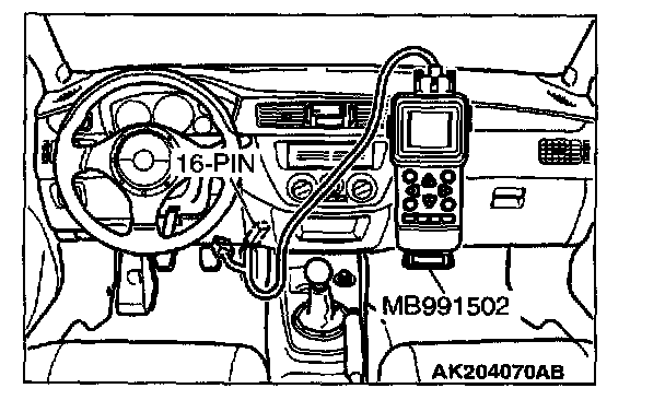 1. Connect scan tool MB991502 or MB991958 to the data link connector.