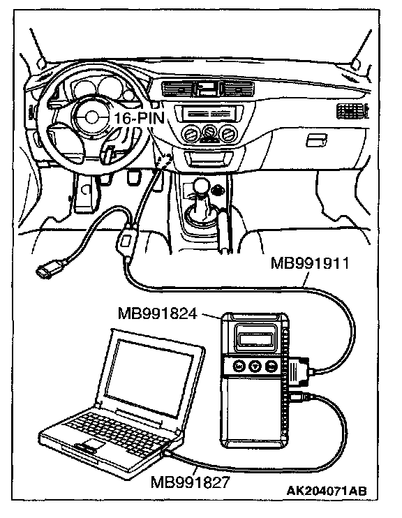1. Connect scan tool MB991502 or MB991958 to the data link connector.