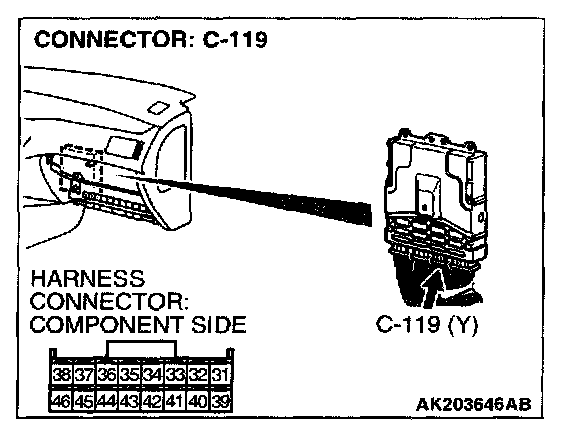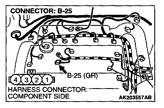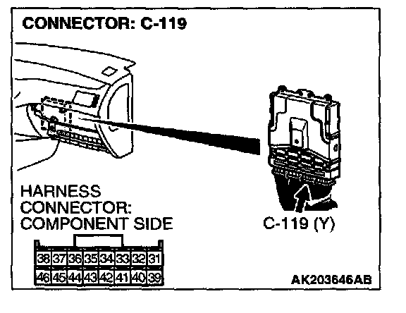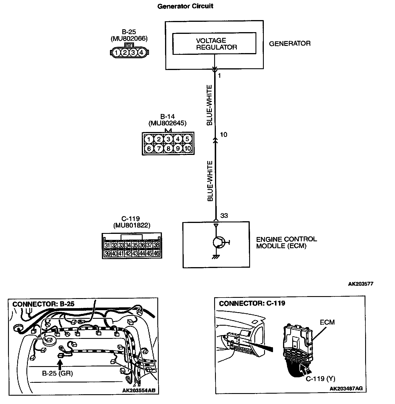 STEP 5. Check for open circuit and short circuit to ground and harness damage between generator connector B-25 (terminal No. 1) and ECM connector C-119 (terminal No. 33).