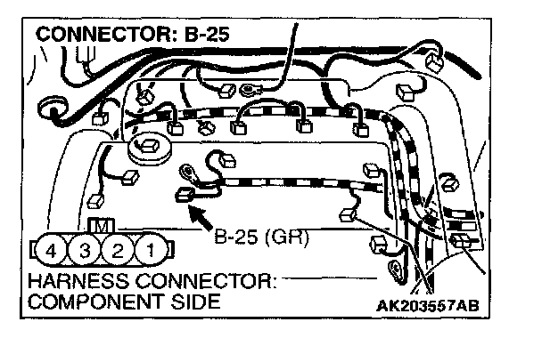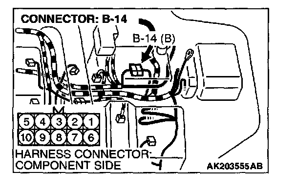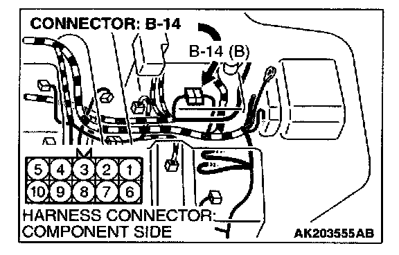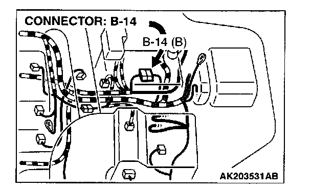 NOTE: Check harness after checking intermediate connector B-14. If intermediate connector is damaged, repair or replace it. Refer to Harness Connector Inspection. The confirm that the malfunction symptom is eliminated.